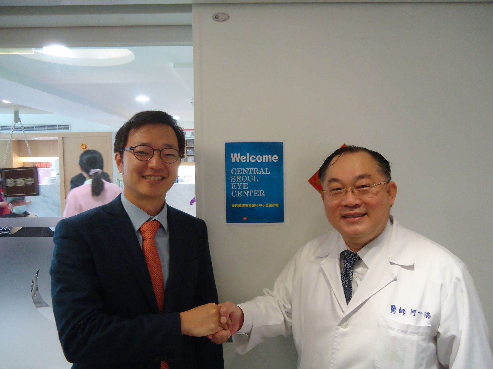 韓國首爾眼科CENTRAL SEOUL EYE CENTER的白內障手術專家Kyunhyung Henry Kim受邀至2016年亞太眼科醫學會(APAO)進行專題演講,期間並專程至双眼明眼科參觀訪問。
