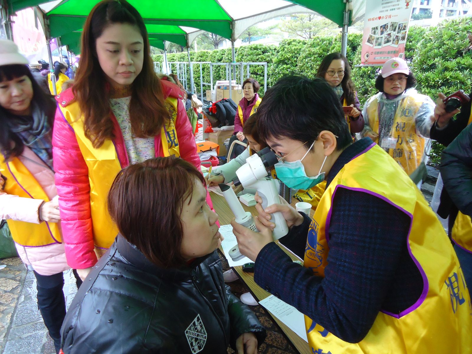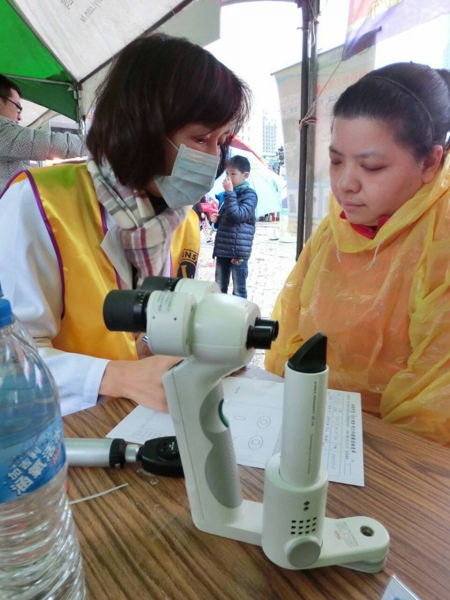 前往市政府廣場支援獅子會所舉辦的~獅子真情,放送溫馨*寒冬送暖公益活動園遊會,與亞東醫院黃子倫醫師的輪替看診,為廣大民眾進行免費視力篩檢。
