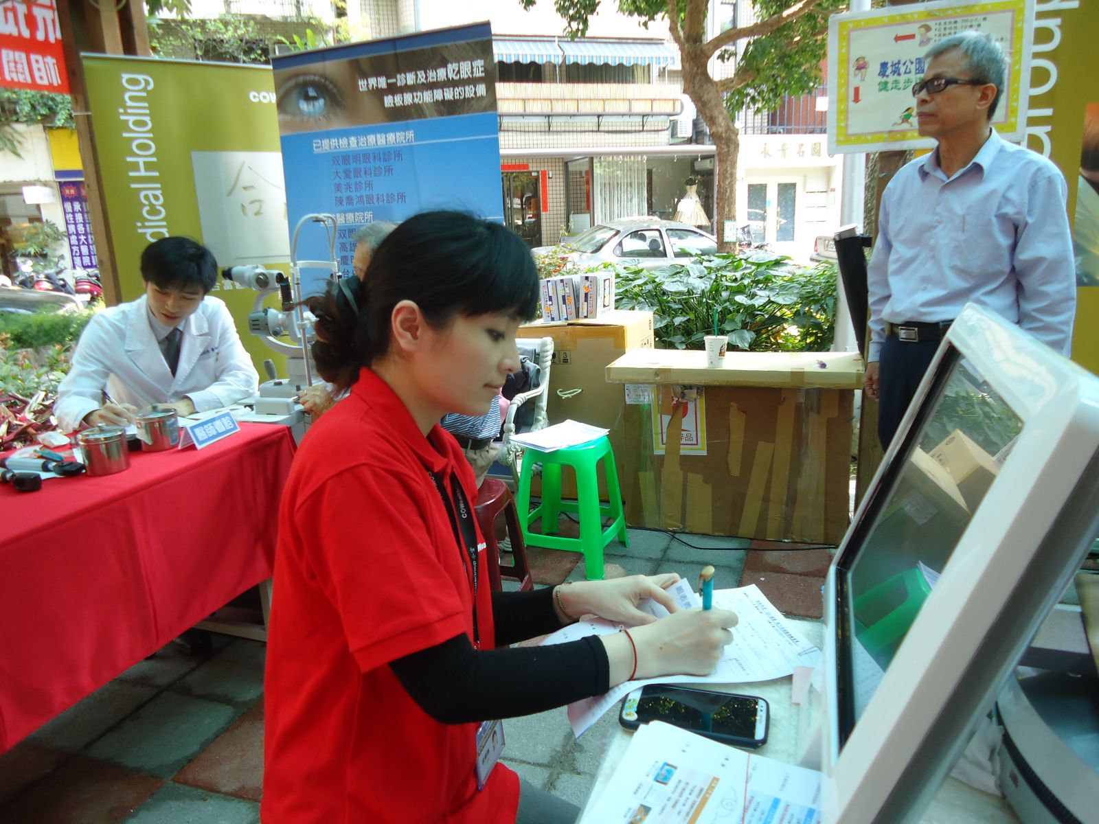 乾眼症為國人常見眼疾,近來更有罹患比例提升的趨勢,為關心好厝邊的眼睛健康,在中正里周勝裕里長的熱心號召下,双眼明眼科與合富公司聯合支援,於2015318日上午,在慶城公園舉辦免費義診,主要是提供新式乾眼症檢測儀LIPIVIEW,以判斷乾眼的病因種類等,是淚腺分泌淚液的不正常?抑或是瞼板腺功能障礙所導致的油脂分泌不均?在張鈞凱醫師的悉心檢查下,三個多小時的時間一共篩檢了超過七十位的民眾,可見飽受乾眼症困擾的民眾為數頗多。