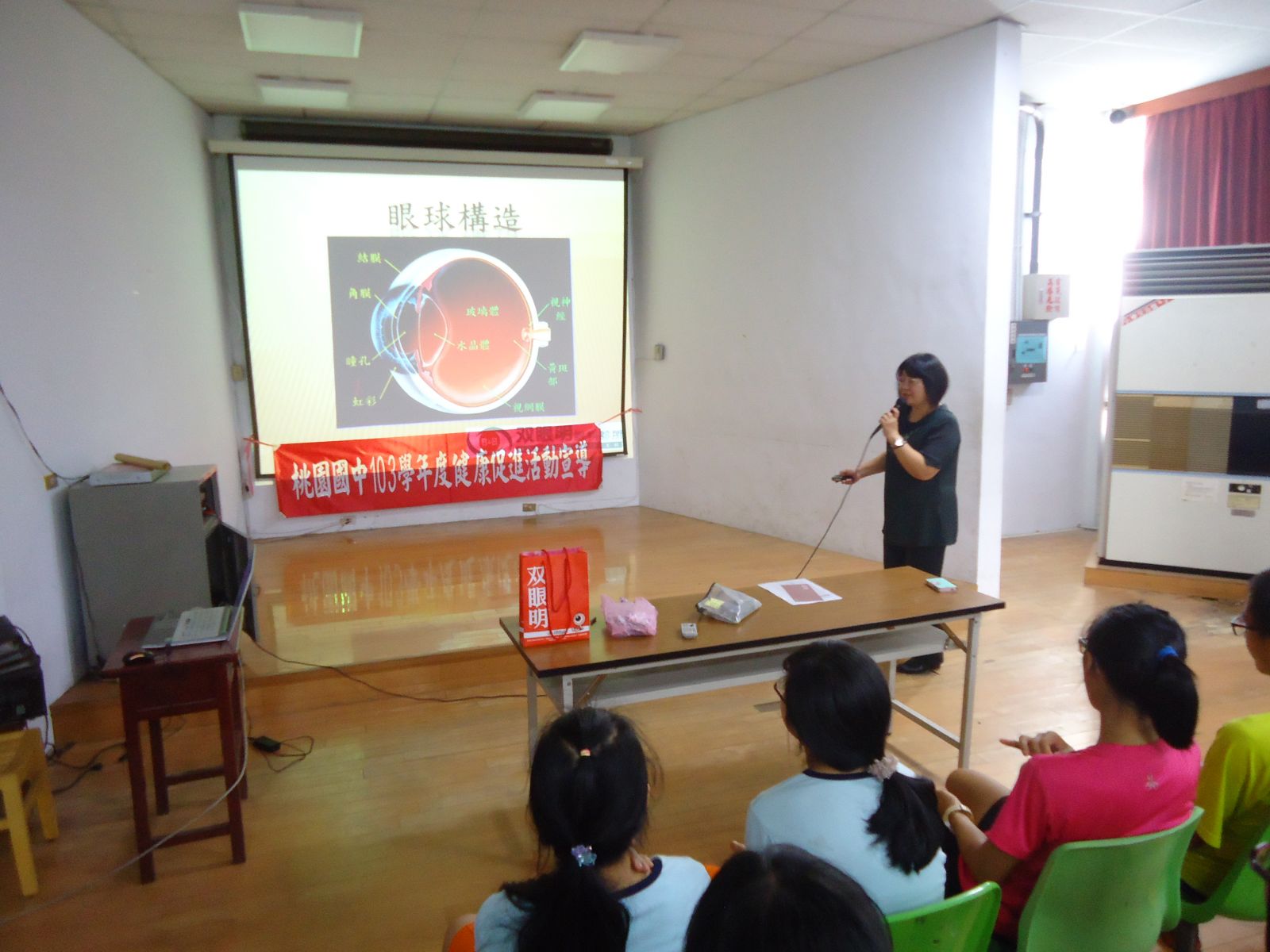 桃園國中舉辦我愛靈魂之窗宣導,邀請中壢双眼明眼科黃雯莉醫師擔任講師,認識眼睛及近視的關係,並提醒同學們近視可能衍生的眼部疾病,及教育如何養成正確用眼習慣,黃醫師的生動演講吸引了大家的專注,還有精彩熱烈的有獎問答,收實質教育功效。