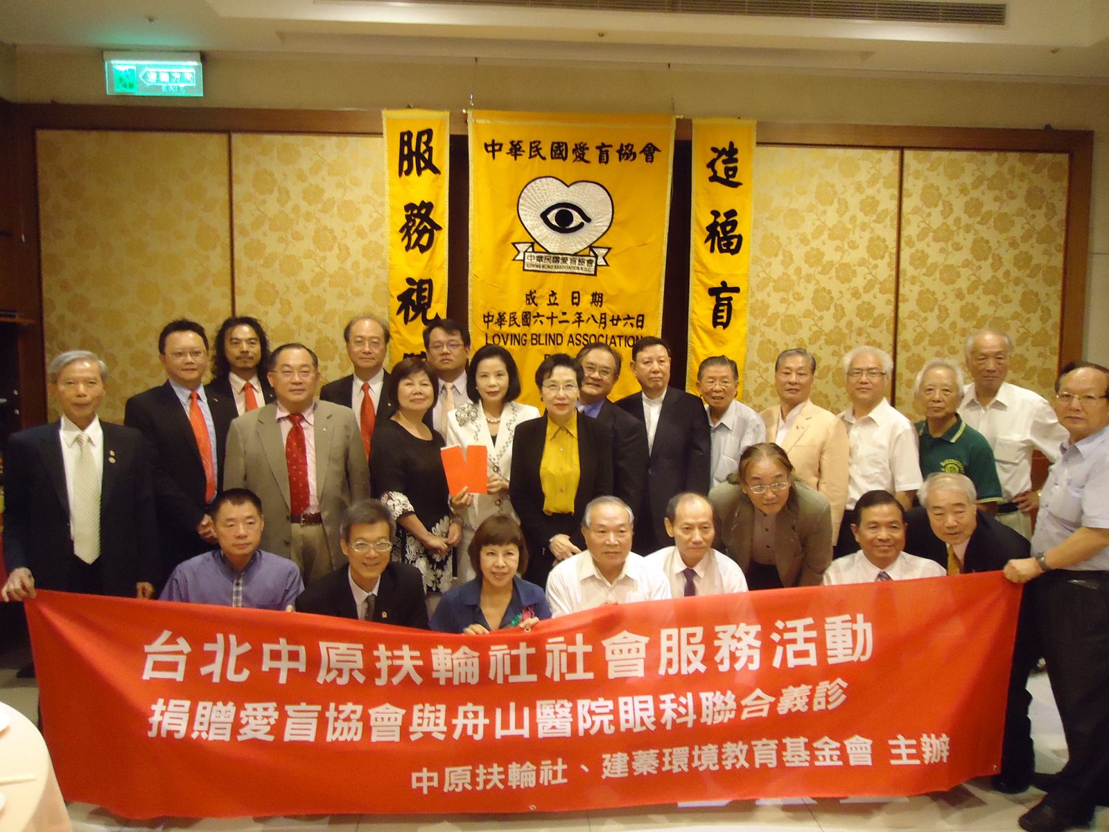 日前,在陽光扶輪社和双眼明眼科的居中協助下,中原扶輪社及建蓁環境教育基金會聯合捐贈了款項給中華民國愛盲協會,專款專用,將購買一批白內障手術所需的人工水晶體等耗材,由愛盲協會與舟山醫院眼科舉辦聯合義診,協助當地的白內障患者重見光明。