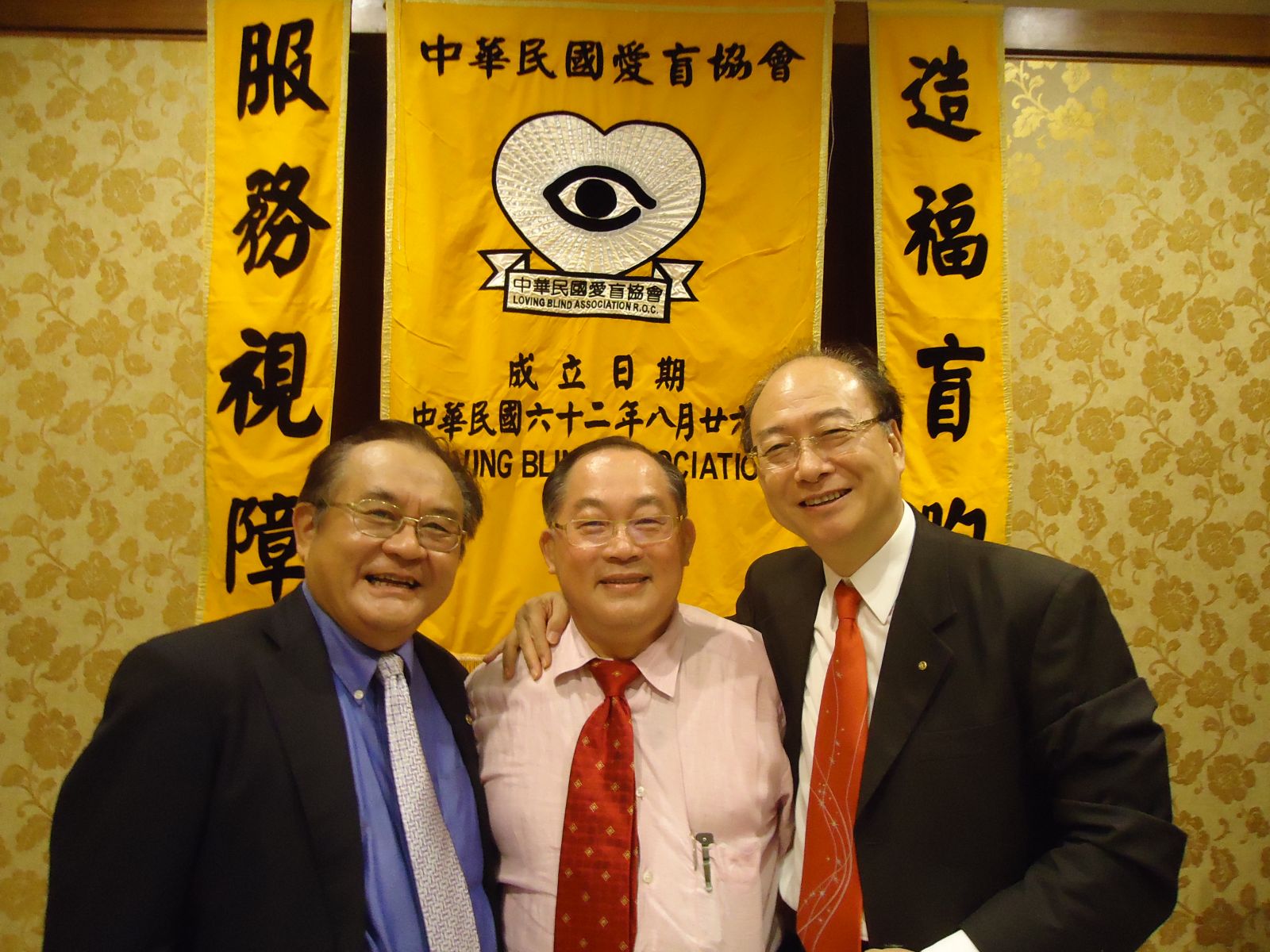 双眼明眼科總院長何一滔醫師、愛盲協會前理事長嚴長庚先生、陽光扶輪社林博仁社長(由左至右)