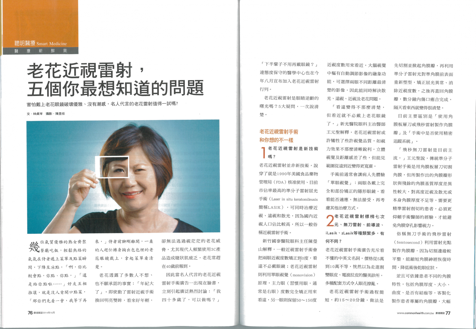 双眼明眼科王元聖醫師接受康健雜誌採訪,與其他名醫一同探討老花近視雷射,列出當你準備接受準分子雷射屈光手術治療老花以前,五個你最想知道,也應該要知道的重點事項。