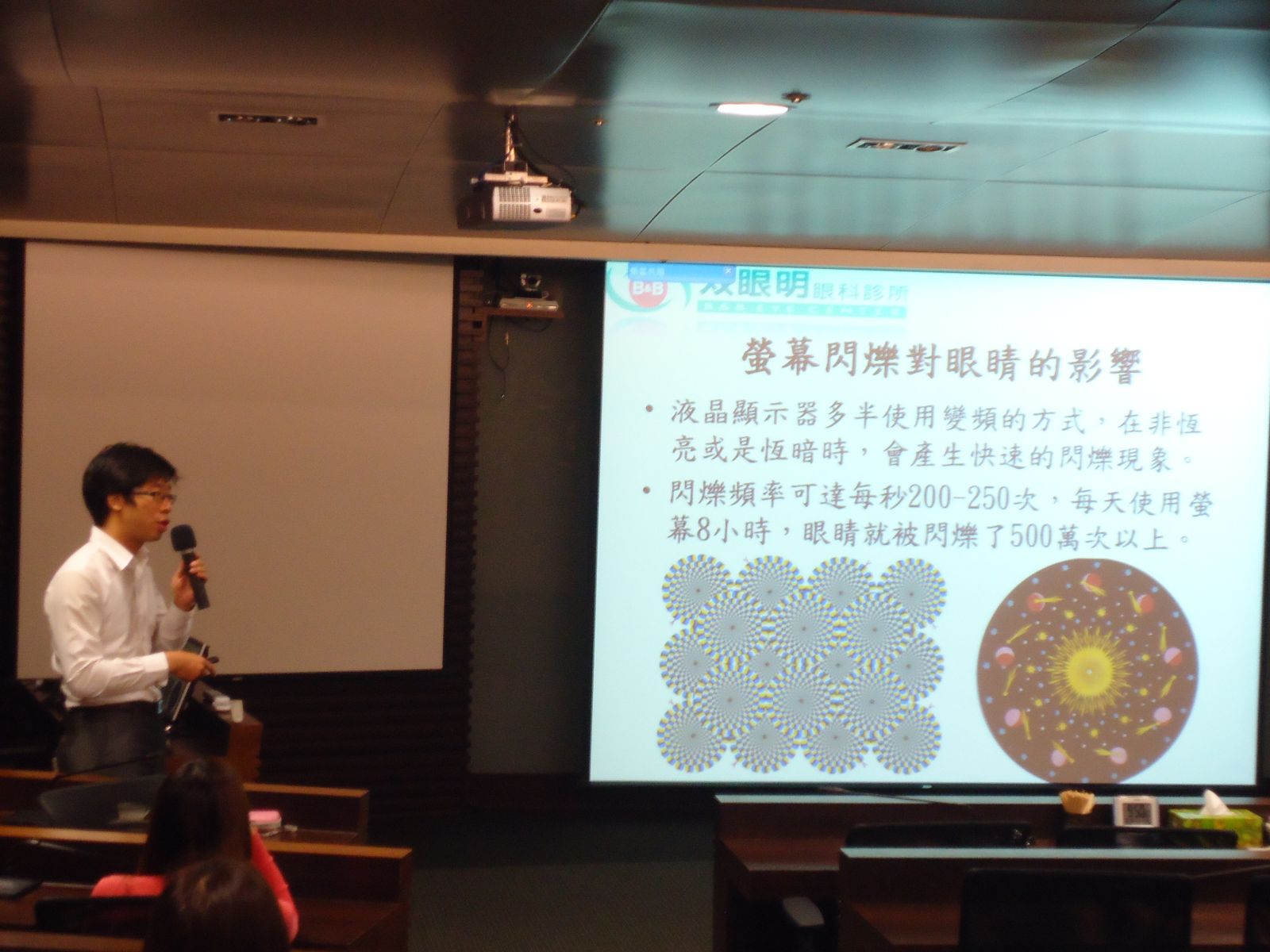 王醫師運用了鮮活生動的資料圖片,採取詼諧幽默的表達型態,深入淺出的闡述眼科專業知識,讓長時間處於辦公室的民眾,對眼睛的保健、治療及預防,有了更深刻的了解。