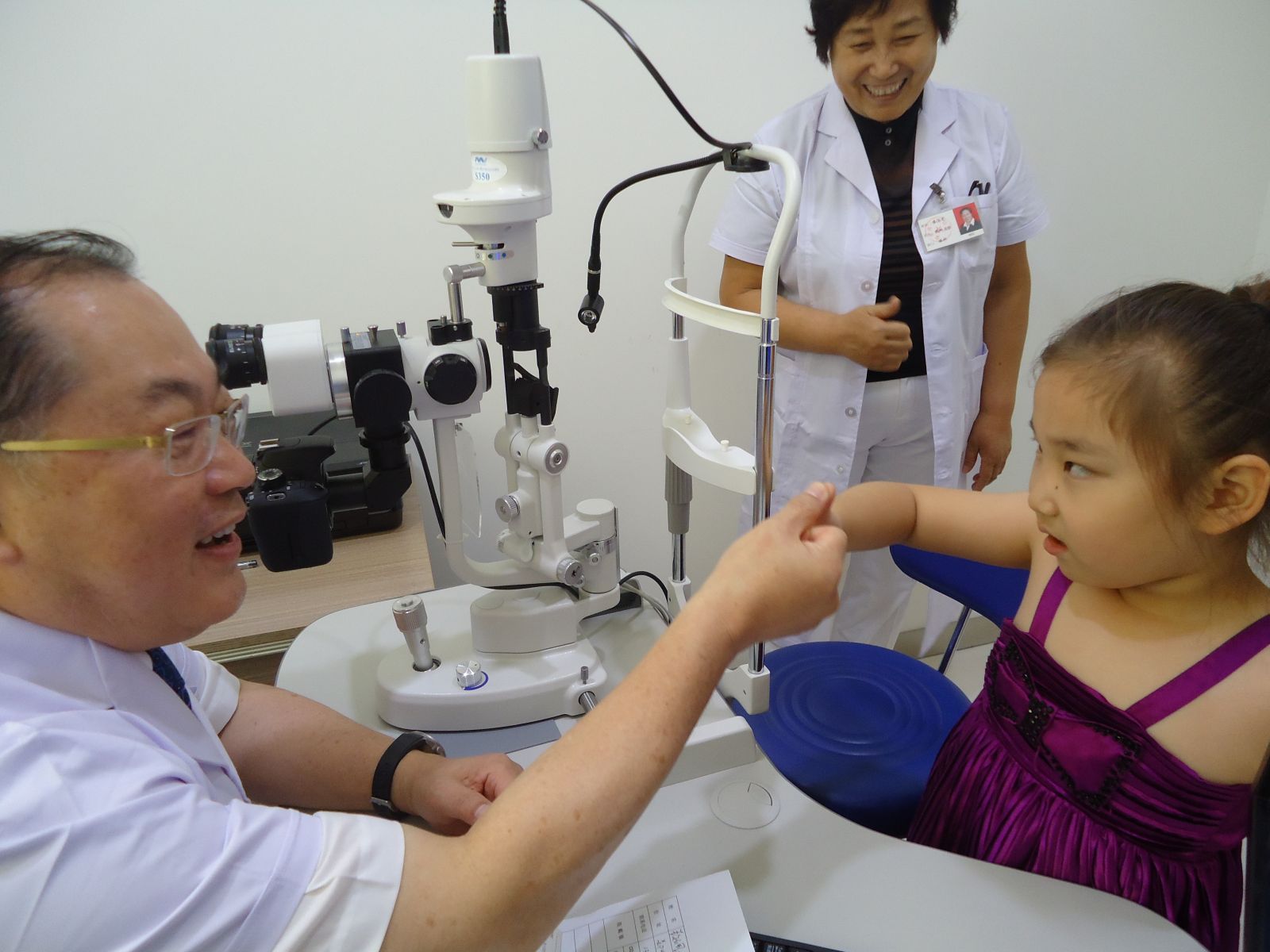 何醫師當場為高疑難性的低視力患者進行詳細檢查,並與中國眼科專家就學術面研討,受邀演講飛秒雷射白內障手術的臨床經驗。