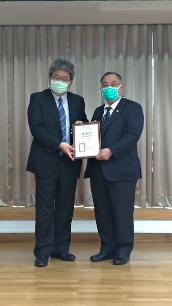 感謝青光眼衛教手冊的贊助,左為呂大文理事長,右為何一滔理事長