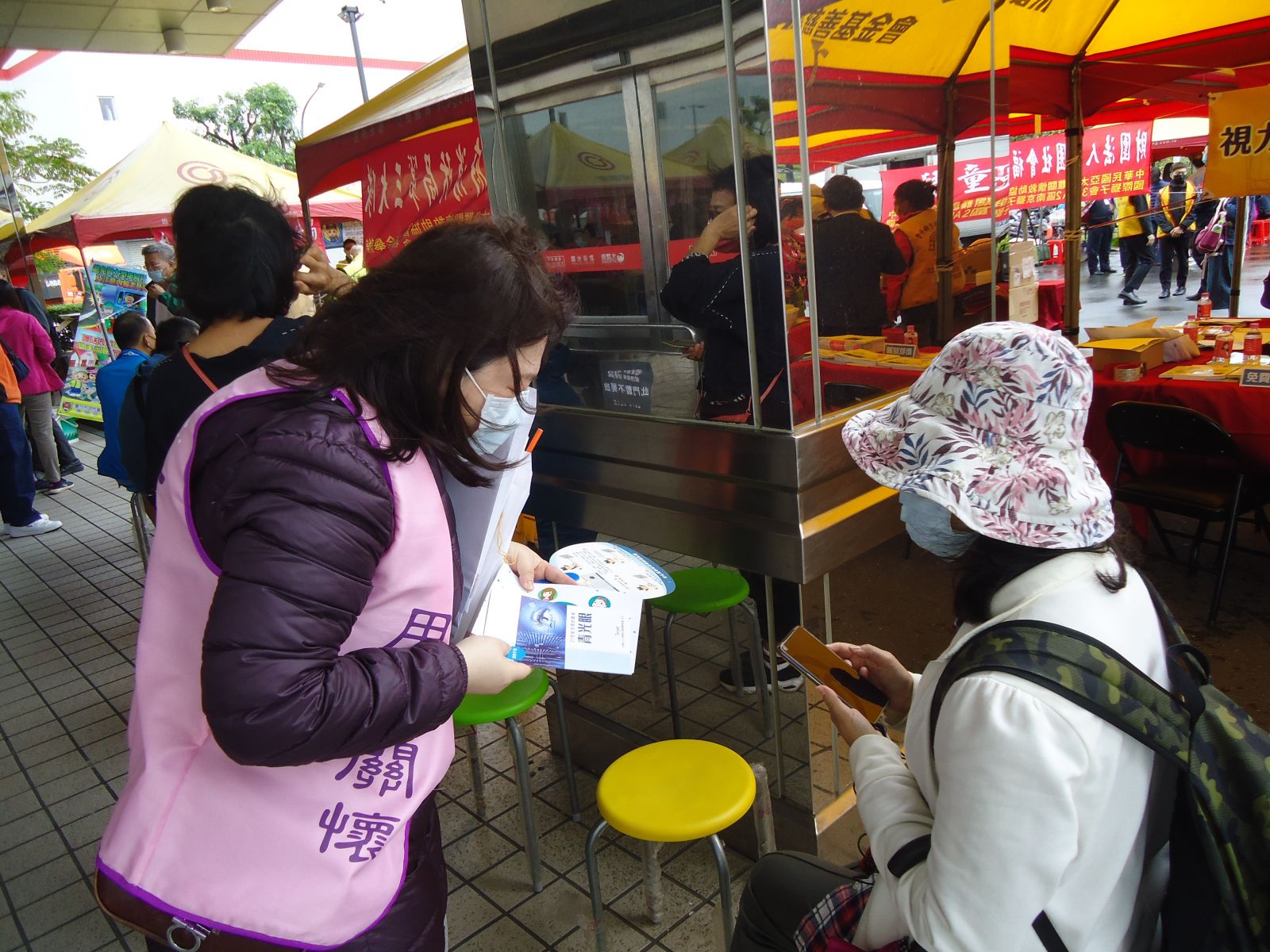 當天雖然細雨霏霏,天氣也是略屬低溫,大家還是如同活動主題一般~熱血沸騰!在主辦單位的努力推動下,不到中午就有超過百位民眾挽起衣袖助人!双眼明眼科診所人員及中華民國愛盲協會張美麗常務理事、林逸智特別顧問、魏鸝瑤秘書等人,也積極到攤位以外發送衛教文宣,並主動詢問民眾是否有眼睛方面的困擾?適時的給予諮詢服務!