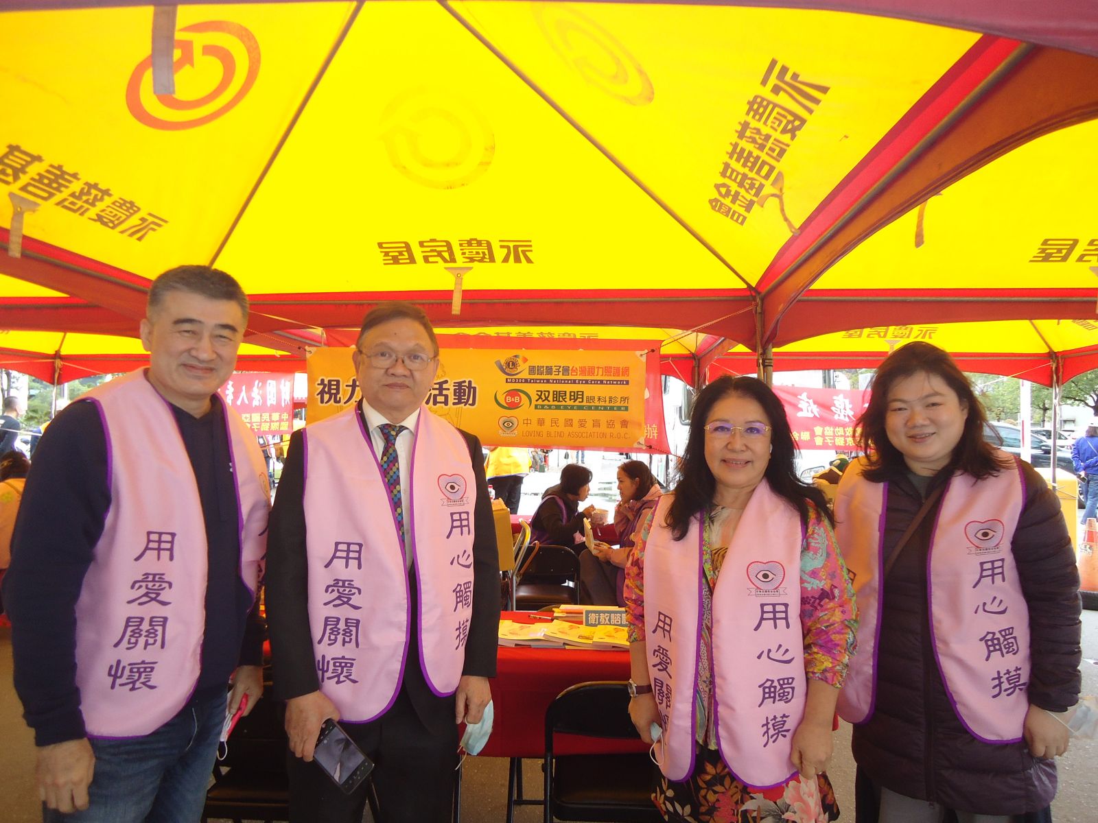 愛盲協會視力關懷不落人後,張美麗常務理事(右二)、林逸智特別顧問(左二)、李世泓特別顧問(左一)、魏鸝瑤秘書(右一)