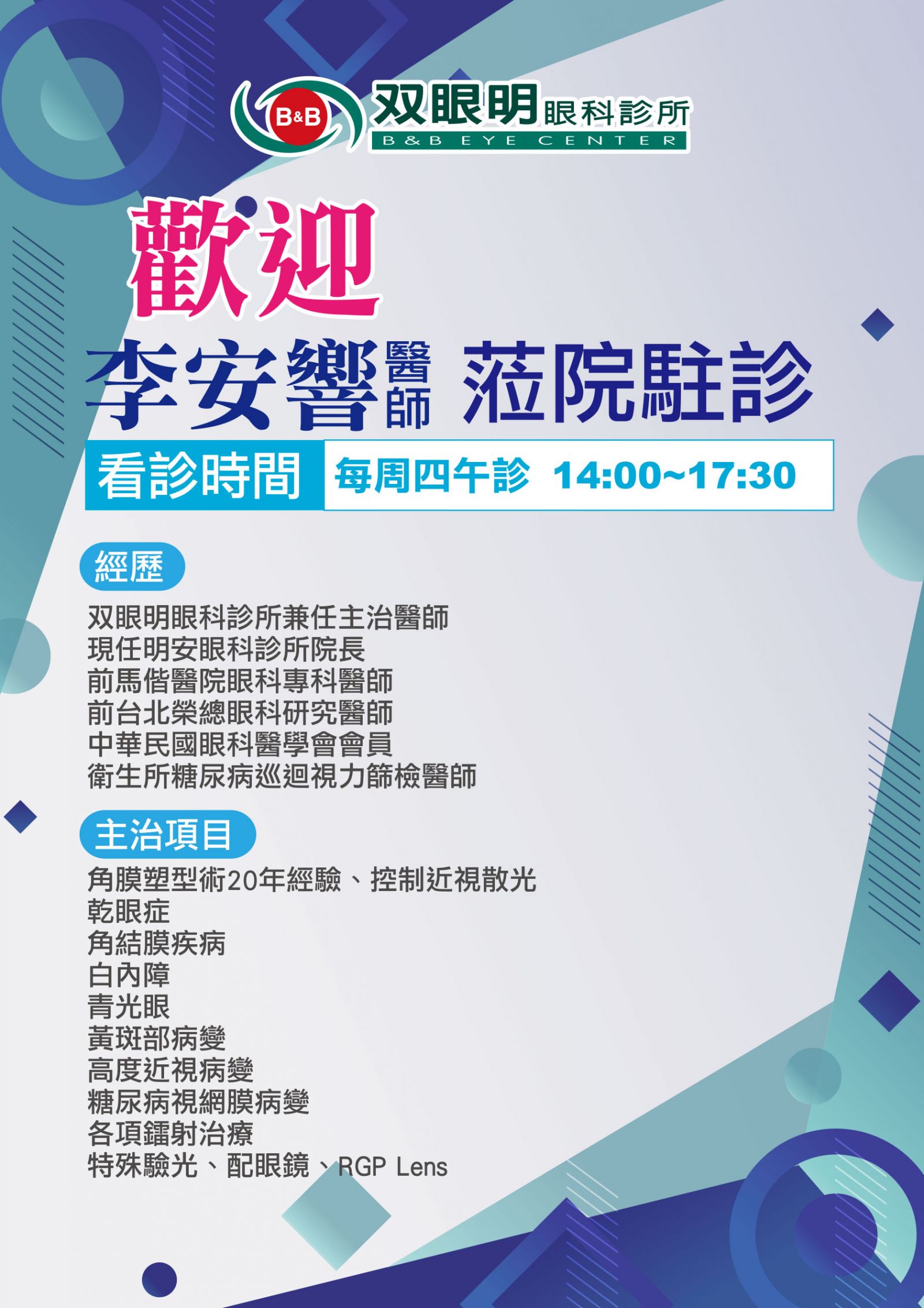 歡迎李安響醫師蒞院駐診 中壢 每周四,午診