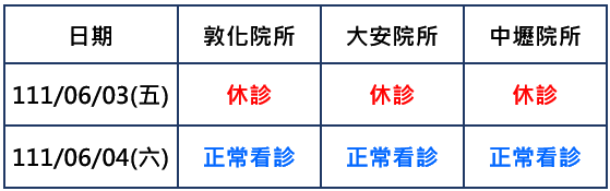 双眼明體系之院所 111/06/03(五) 端午節休診狀態公告
