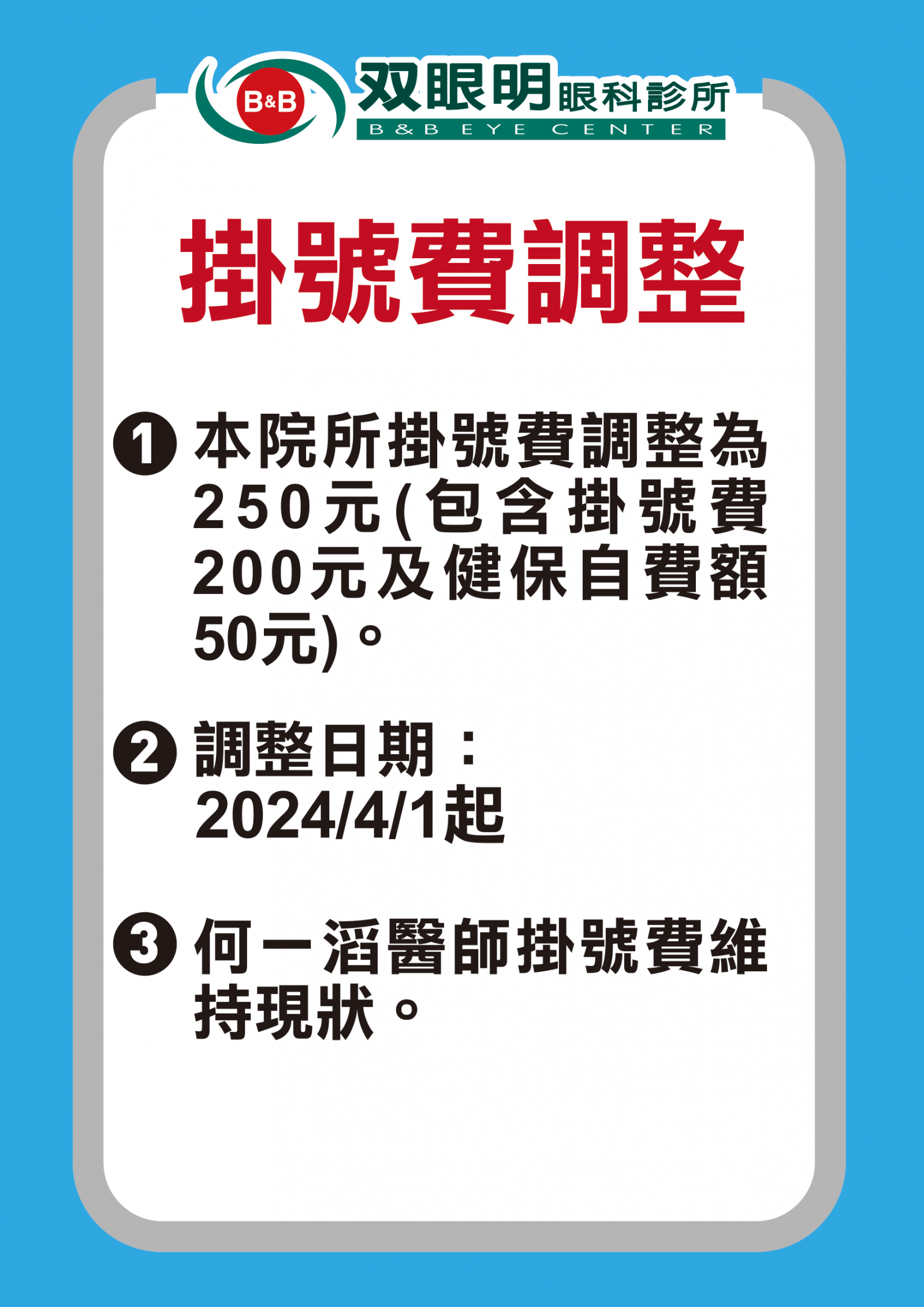 2024/4/1起,掛號費調整-敦化院所