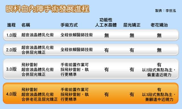 ▲眼科白內障手術的發展進程一覽表。(圖/公關照片)